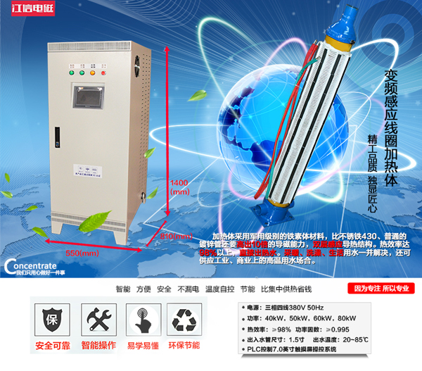 時至今日,電磁加熱采暖技術引入我國已有十幾年光陰。有關電采暖設備的設計與制造早已發展成熟,并且廣泛運用到各行各業當中。恰在此時,環保的呼聲日趨高漲,燃煤造成的污染問題迫使人們急切地尋找可代替燃煤的取暖方式。清潔供暖的國家政策已遍布整個神州大地!電磁采暖器是利用電能轉換為熱能的,而電在大型的電廠里產生的廢氣獲得了極為有效而經濟可行清潔處理。而且,電廠的效率高??梢允官Y源獲得更好的利用。那么電磁采暖器首先在能源方面就滿足了清潔采暖的要求。其次,電磁采暖器的運用十分之廣泛,可用于家庭住宅、學校、醫院、工廠、溫室、別墅和企事業單位采暖、大型洗浴首能熱水及游泳池熱水循環加熱,可單機使用,也可多機并聯成大功率機組。配合暖氣片,地暖管、水空調使用,也可提供熱水,供熱時間和供熱溫度任意設...