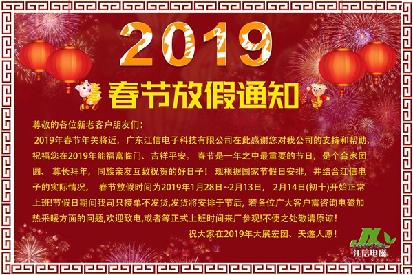 心中有夢想,眼前有目標,手中有計劃,腳下有行動!一連串的鞭炮聲預示著江信電子于2019年2月14日的這一天正式展開了新一年的工作。這一天是西方傳統的情人節,相愛的人們會在這一天甜蜜相聚。而江信電子選擇這一天啟市,也是希望能和各位新老顧客朋友在新一年的合作過程中能如情人相處般歡樂、順利!在2018年里,江信電磁加熱設備被送到各個機構里做了各項認證,只為給客戶奠定一個堅實的后盾,我們滿懷激情地為各項工作做好了充足的準備。那股濃厚的工作情懷還蕩漾在每個江信人的心中,現如今,我們開展了新的歷程!2019年,是《打贏藍天保衛戰三年行動計劃》開啟的頭一年,江信電子將持續全力地協助國家進行科學合理、循序漸進的有效治理污染方案,憑借在電磁感應加熱領域的各方面技術,根據國家在區域繼續控制煤...