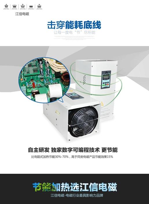 一看環保:藍天碧水由此歸來 當一座座高聳入云的煙囪冒著滾滾濃煙,直沖云霄時;當一輛輛的汽車排放著黑滾滾的尾氣,污染大氣時,我們的藍天越來越少,我們的碧水越來越濁。霧霾的大范圍出現,徹底引起了人們的恐慌。我們賴以生存的家園在經濟發展的列車車輪下被碾得面目全非。于是“同護藍天,共營綠水”已成為當今社會發展的一個主題,是我們共同的夢想,也是工業加熱領域必須面對的責任。解決污染,采用全球先進的加熱模式——電磁加熱迫在眉睫。于是工業電磁加熱的零污染技術引起了全世界人民的共同關注與追捧。電磁加熱技術在全球掀起了工業加熱的國際旋風。于是,江信電磁加熱企業與環保同行,與綠色同在。 二看智能:超現代化生產 ???? 這幾年,“智能化”在工業加熱領域屢屢被提及,特別是今年江信電磁實現了“高級智能”,江信電磁高精度可編程系列電磁加熱產品的隆重推出,就是的印證。它們能夠讓工業加熱實現全程監管、全部控制、全時對話,提升了工業加熱的安全性、便利性、舒適性和藝術性。 ? ??三看節能:讓資源的利用實現可持續發展 電阻式加熱的出現,雖然從某個程度上解決了工業加熱污氣的排放問題,但是它耗能巨大。隨著世界資源的日益緊缺,這種電阻式加熱模式也凸現了很多問題。工業電磁加熱技術可以說是時代的產物,是市場的需求。它聚節能減排、綠色環保于一身,成為工業加熱行業的天之驕子。而江信電磁加熱更是工業電磁加熱行業的“領頭羊”,以其先進的科技,獨特的創新精神,鑄造了工業電磁加熱行業的卓越品牌。 2015年工業加熱重點看什么?無非是環保、節能、智能這三大主題。江信電磁會將這三大主題完美結合,用實際行動詮釋一個企業的高度與責任。