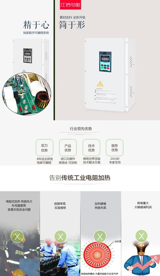 可見,經濟發展要與環境保護同步,只有兩者的和諧,才能營造人類美好的家園。所以,我國宏偉目標的實現有賴于每個經濟體的努力。要撐起國家的環保大計,更需要市場經濟的中堅力量——民族企業的全力以赴。那么,作為工業加熱界的代表企業——江信電磁,它正用自己的行動為這個中國夢而努力。 ???? 2006年以前,周武江先生目睹工業加熱行業的鍋爐式加熱所產生的滾滾濃煙對大氣的污染,目睹電阻式加熱的大量耗能及高溫的生產環境,他就有了用綠色科技創新的想法。功夫不負有心人,經過幾年的潛心鉆研,大膽創新,勇于實踐,他與他的科研團隊終于掌握了工業加熱的全新技術——工業電磁加熱的核心技術。于是江信電磁在2006年正式啟航,電磁加熱技術廣泛應用于塑料橡膠品、化工、醫藥、食品、能源、印刷、建筑型材等行業的加熱節電,江信電磁研發出的一系列高精度可編程電磁加熱產品也熱銷海內外,為世界的節能減排做出了巨大的貢獻,為我國的許多大小企業節約了能源,降低了生產成本,提高了企業的競爭力。特別是江信電磁積極參與國家的“碧水藍天”項目,積極去推行節能減排、綠色環保的生產理念,用自己的實際行動去履行一個企業的責任,體現一個企業關愛環境,讓環境與經濟同步協調發展的偉大情懷。 ???? 江信電磁董事長周武江先生深情地說:“身處任何時代,只有腳踏實地,勇于創新,才能撐起中國制造的未來。江信電磁一定會勇于承擔引領工業加熱行業發展的重任,不遺余力地為世界節能事業的發展、改善人類生活環境做出貢獻!” ?