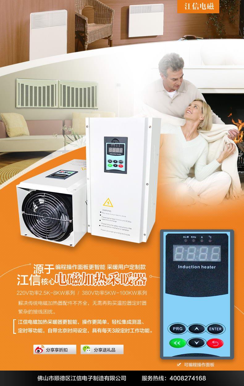 ? ? 在中國的北方,進入冬天之后,氣溫降到零下10-30度,必需要采曖才能過冬,然而,目前市面也有各種各樣的采暖器或設備,有些采用煤,有些采用天燃氣,也有些采用電阻式發熱。但以,以上的采曖設備雖價格經濟,但是使用時,是非常耗能源。所以,我們公司推出江信電磁加熱采暖器,可直接代替傳統采暖器。它的優勢在于: