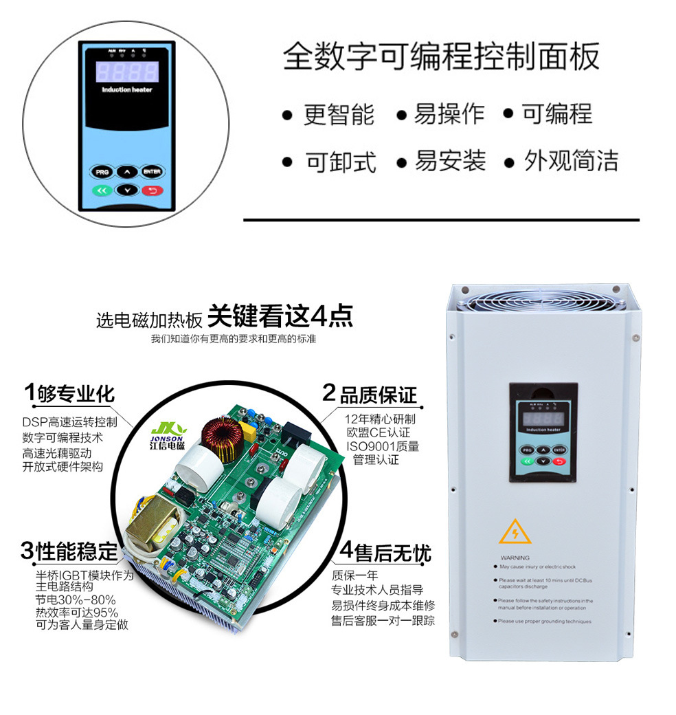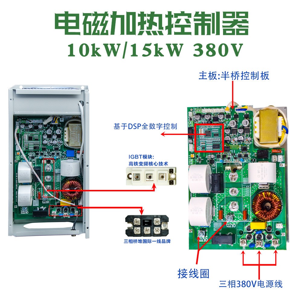 三相10KW/380V、15KW/380V電磁加熱控制器。是本公司研發的基于本公司第五代DSP控制平臺的數字電磁加熱系統。與以往電磁加熱控制板相比,采用全數字運算處理、德國英飛凌磁驅動、全數字鎖相跟蹤技術。具有高性能穩定,熱效更高,便于安裝,故障率低的特點。應用十分廣泛,外觀美觀、安裝方便,調試簡單,應用可靠。可廣泛應用于采暖、塑料機械、橡膠設備、化工、模具、商用電磁爐、各種管道加熱、平面加熱原油輸送等類似加熱行業。